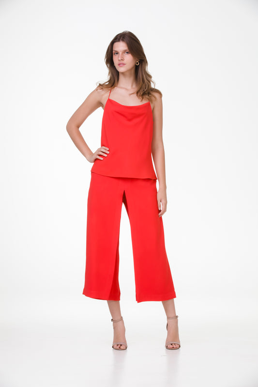 Pantacourt Indiana em Crepe Patou – Vermelho Escarlate